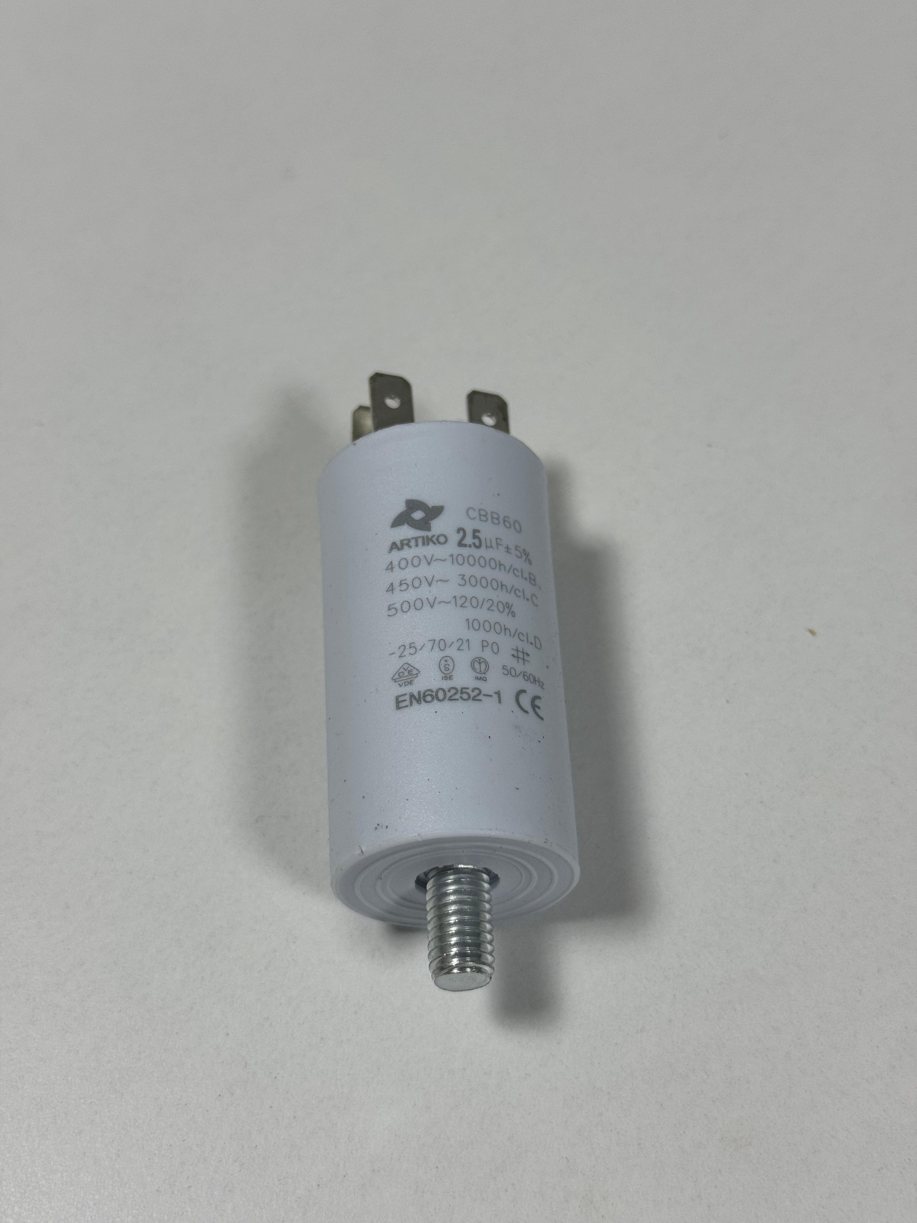 2,5 UF kondansatör, motorların düzgün ve titreşimsiz çalışmasına yardımcı olur. Dengesiz akım oluşumunu azaltarak fan ve motor performansını artırır.